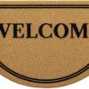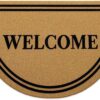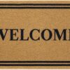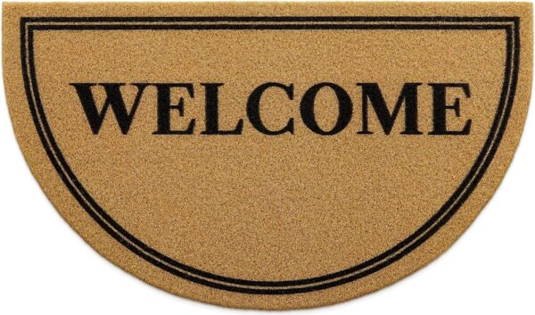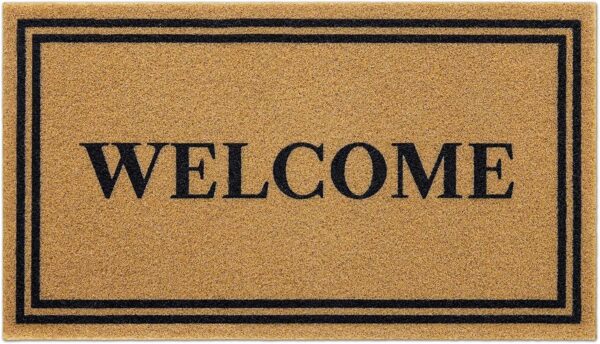 Great value for the money. The WELCOME print is clear and crisp. Design is simple, yet the greeting is bold. It’s a thinner mat, but it feels more stable underfoot than the thick one, and cleans your shoes just as well. I was surprised it’s not made of natural materials, like coir or coco, but it’s a believable imitation and means a neater appearance. No worries of shedding, and I’ve had some that shed terribly, leaving an unsightly mess. None of those issues with this one. Overall, I’m happy with this product and would definitely order it again.