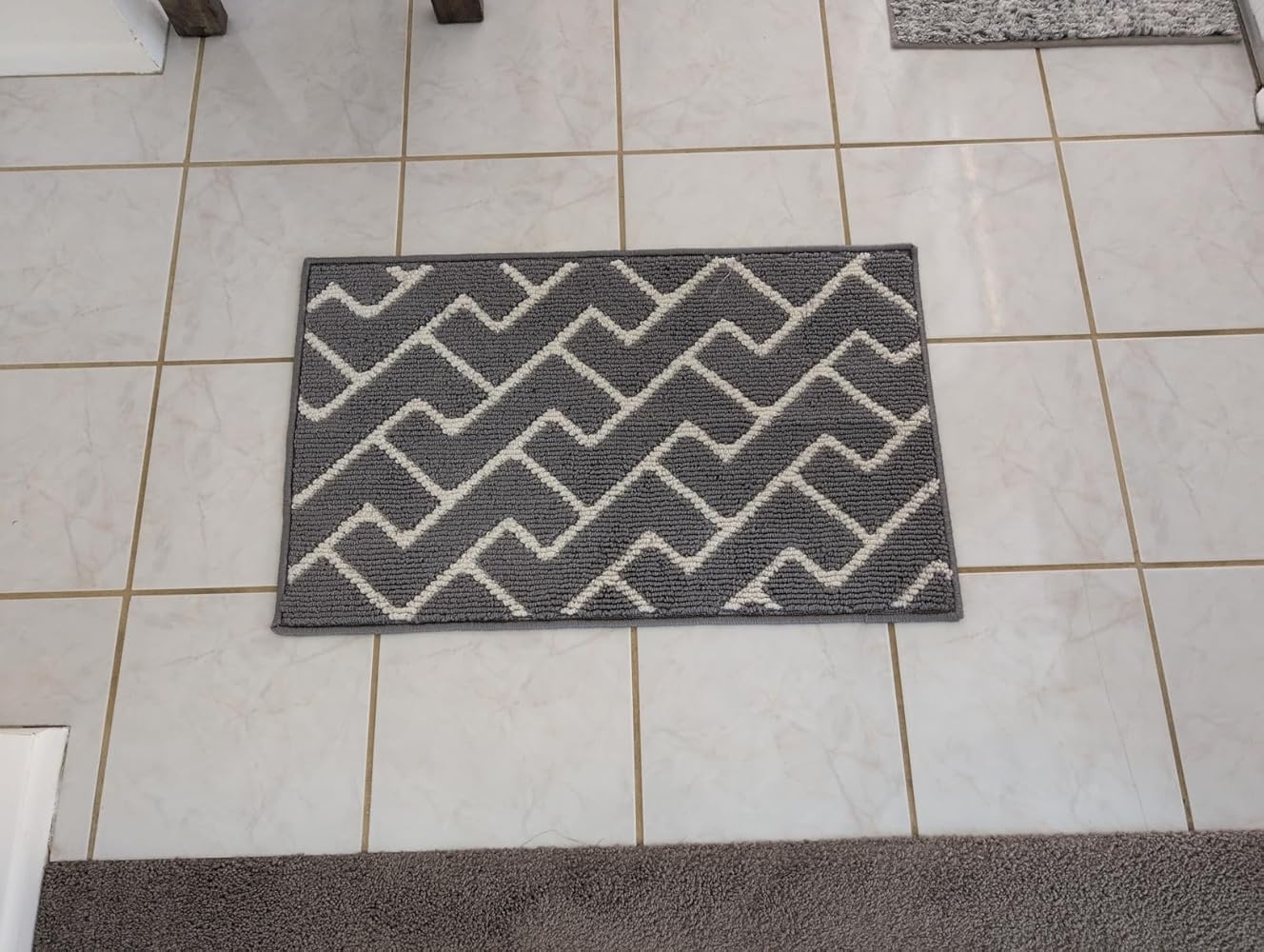 This door mat is about what you might expect. I like the pattern on it, and the non-slip rubber backing helps it stay put. It has a crease down the middle that took a week or so to fade. I can still see it if I look closely. The low pile carpet on this works as an interior welcome mat, or I can see using it in front of the washer/dryer, or even as a bath mat. Although it’s more firmly woven so it’s not as gushy as some bath mats are if you are into that.
