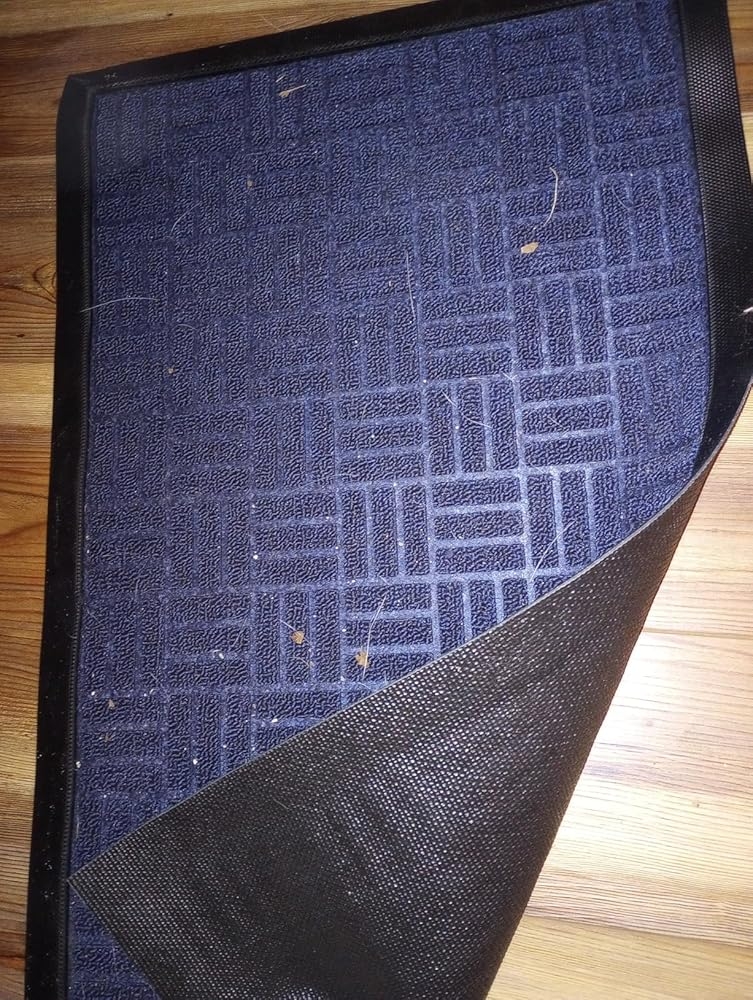 I am using the door mat inside my garage to wipe my shoes before entering my home. I don’t think I would recommend the rug for much more than that. The doormat itself is like a carpet material similar to a cheap rough carpet. This is great for wiping your shoes from light debris, but would soak water if placed outside in the elements. The back is rubber to avoid excessive moisture, but the carpet-like top would absorb water easily. The color and pattern of the entrance mat are accurate to the listing’s description. I am content with the mat, but at this moment, I doubt I would order it a second time. I have been testing the rug for about a week as of writing this review and it’s holding up.