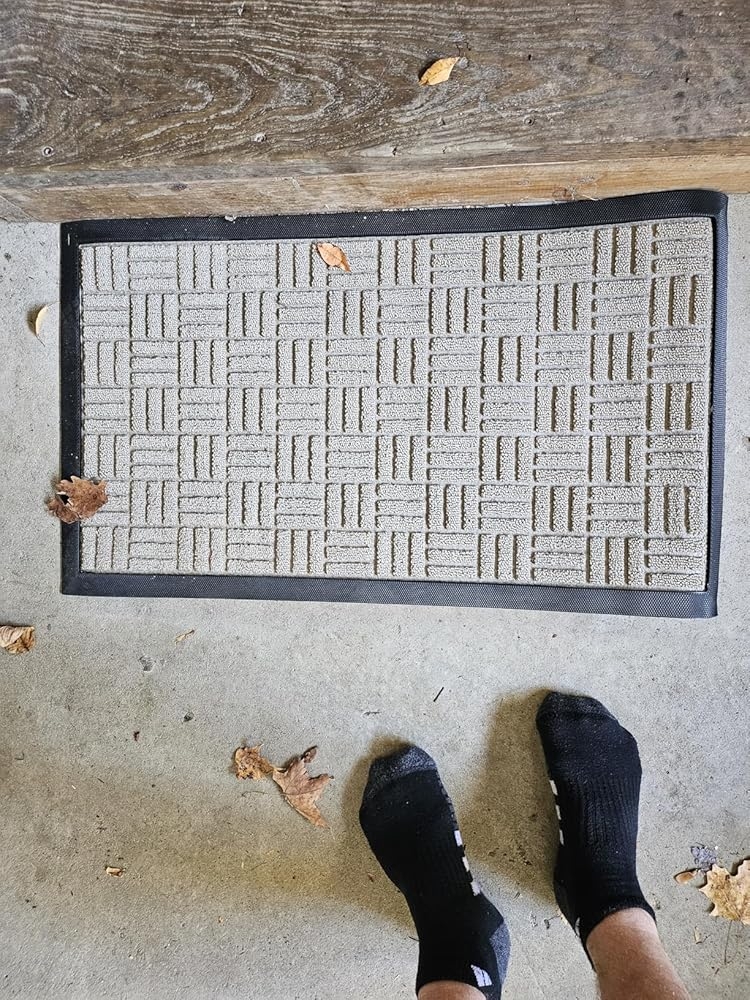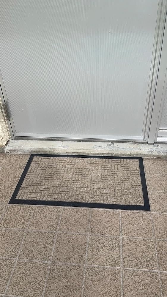 I picked up this OLANLY doormat for my the side door & it’s been solid so far. It’s heavy enough that it doesn’t slide around, & it actually catches dirt & water like it should. The beige color looks good & the door opens right over it with no problem. When it first came out of the box it had kind of a funny rubber smell, but after sitting outside for a few days it went away. Easy to clean too, just shake it off or hose it down and it’s good to go. Overall, nice looking mat that does the job and holds up well.
