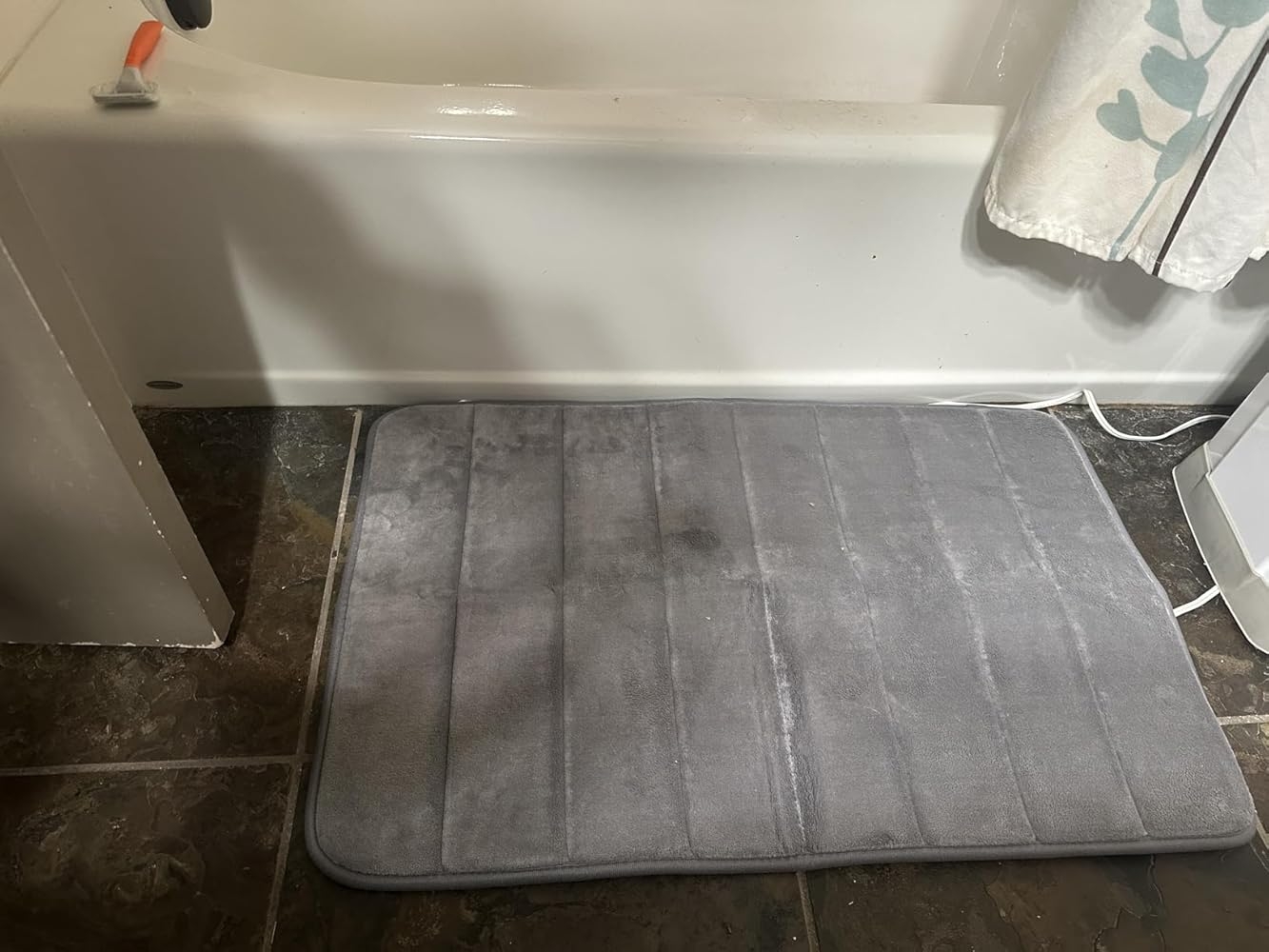Our last bath mat that we use in front of our shower door was well past its prime so, to replace it, we found this nice grey rug sold by Olanly here on Amazon. We liked the price and it was the right size for what we needed. We picked this one because our son had a similar style memory foam bath mat at his last house and even after three years of abuse from him and his three roommates, it still was soft and springy underfoot which shows the potential you get when opting for this somewhat alternative style bath mat.The box arrived rapidly and at first we wondered if the box contained the item we ordered because it was so lightweight! I guess that’s all the memory foam in there, as the rug was just as expected. The style with the subtle stripes goes well with the two other bath mats we have in the same room, and it really does feel great underfoot. The fabric is very soft and it is definitely absorbent. The bottom side is coated in an anti-slip material and so far it hasn’t moved an inch from the spot we placed it on. Overall I think we have a winner here. A+